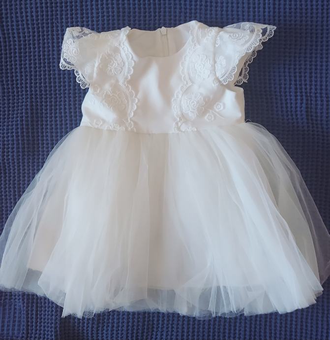 Prodajem krsnu haljinicu - set haljina, mašna za haljinu, ukrasna trakica za kosu, cipelice i štramplice. Velicina 3 do 6 mjeseci. Kupljene kod angelic fashion za 52 eura. Korištena jednom, bez ikakvih tragova nošenja. Mogućnost slanja poštom.