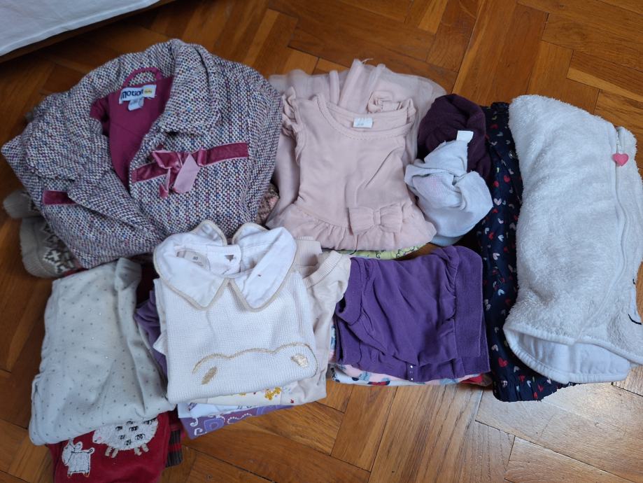 6 haljina, 4 majca kratkih, 6 majce duge, 1 bodi, 3 hlače duge, 2 kratke hlače, 3 veste, hudica, jakna zimska, 2 jaknice, 2 štrample.