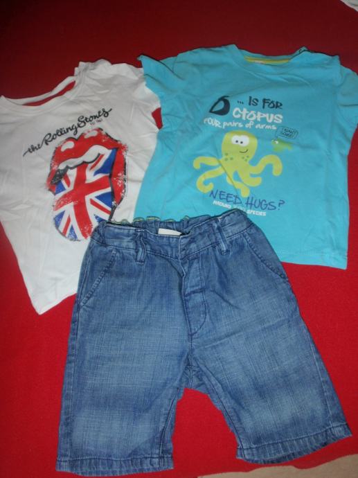 Ljetni lot za dečke. Majica Rolling Stones veličine 74, bermude tanji traper velična 74, majica tirkizna C&A veličina 86. Sve smo nosili sa 12-18 mjeseci tako da se po tome najbolje ravnati. Savršeno očuvano bez oštećenja i flekica. Pogledajte moje ostale oglase.