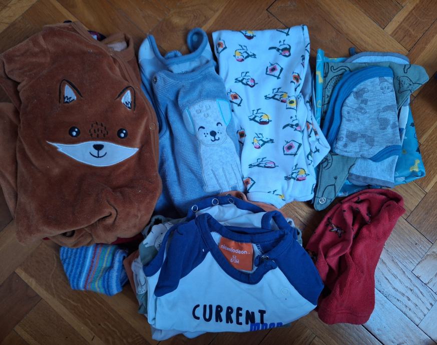 8 bodija dugih rukava, 1 bodi kratkih rukava, 2 kombinezona, 2 piđame, štrample, 4 podbratka