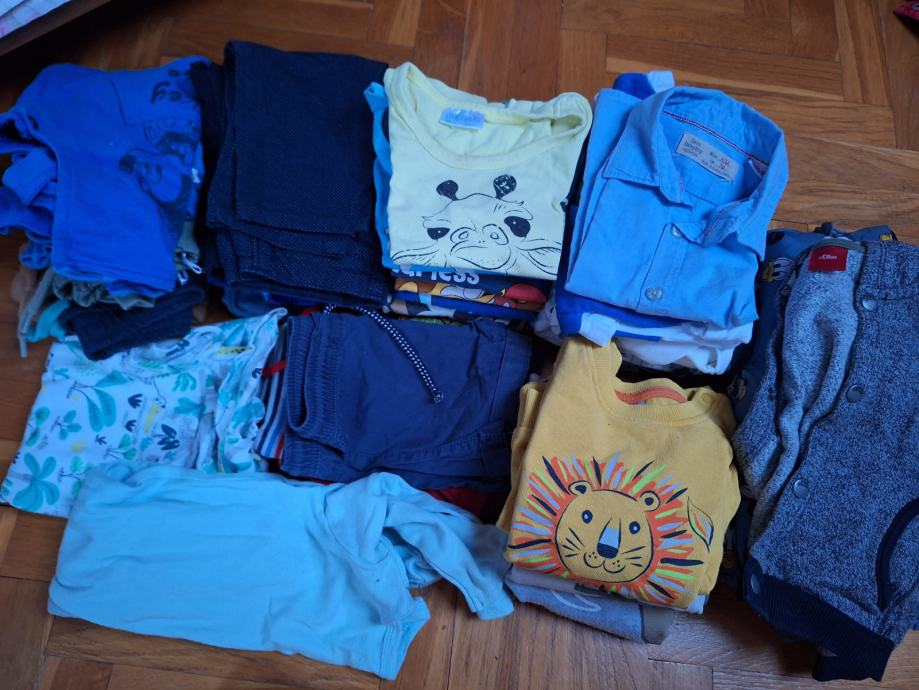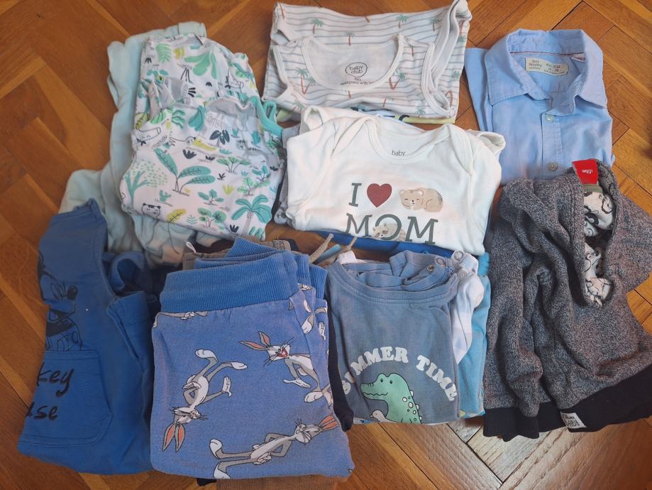 1 piđama duga, 1 piđama kratka, 1 kombinezon, 2 bodija kratkih rukava, 8 bodija dugih rukava, jakna, ogrtač 7 hlača dugih, 2 kratkih, 5 kratkih majca, 8 duga majca, 1 košulja duga ZARA, hudica S. Oliver