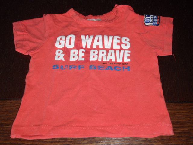 Majica u zagasito crvenoj boji sa natpison na prsima i zakrpom na lijevom rukavau. Veličina 74. Kombinacija pamuka i elastina. Rub na zadnjem dijelu majice je odšiven. Vidi se na posljednjoj slici. Bez flekica i drugih oštećenja. Pogledajte moje ostale oglase.
