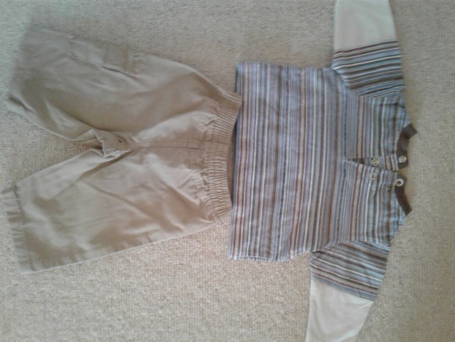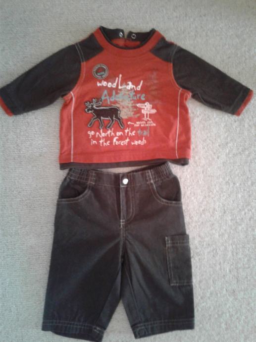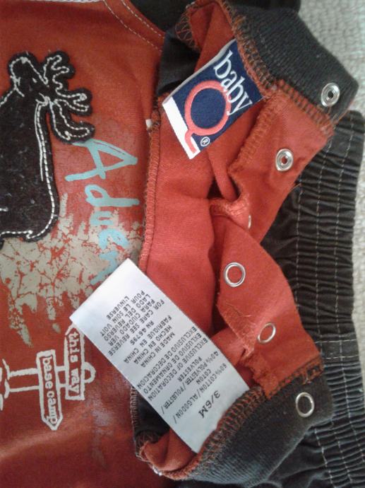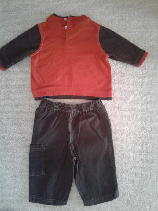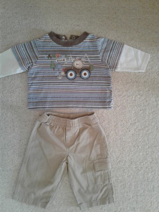 Prodajem dva kompleta: majica dugih rukava + duge hlace, velicine 3-6mj, svaki komplet po 3 eura. Odjeca je marke Baby Q, kupljeno u SAD-u. Hlace su na gumu, a majice s par gumbica radi lakseg oblacenja. Bez ostecenja i mrlja. Moguce preuzimanje u zapadnom dijelu Zagreba i Samoboru ili slanje postom uz nadoplatu.