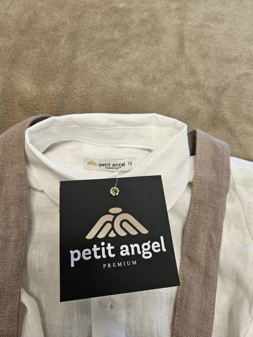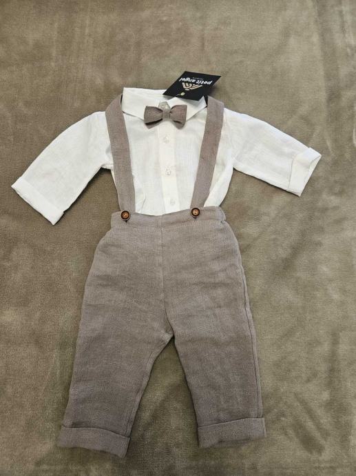 Prodajem potpuno novo nekoristeno odijelce s etiketom i originalnom kutijom. Velicina je 74, pogodno za krstenje,a moze i onako :) Postarina nije ukljucena u cijenu. Puna cijena mu je 60 eura. Na poklon dajem i krsnu kosuljicu.