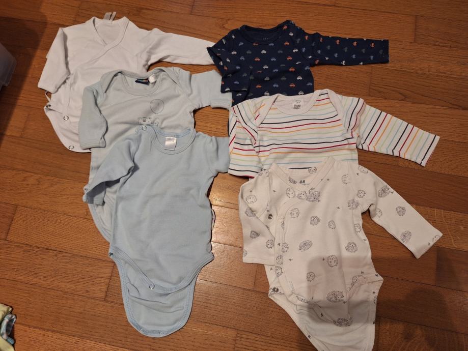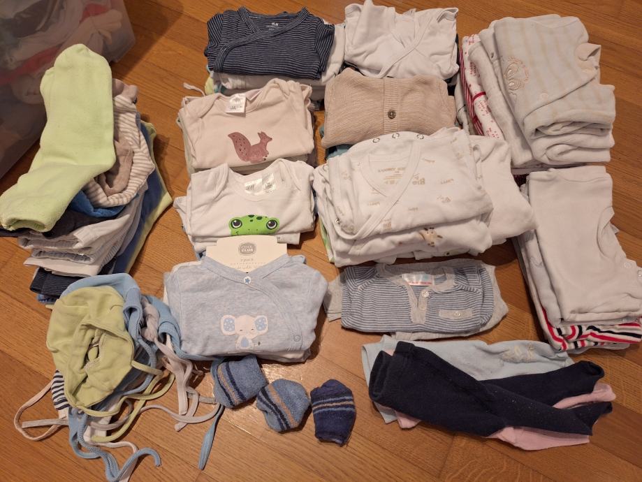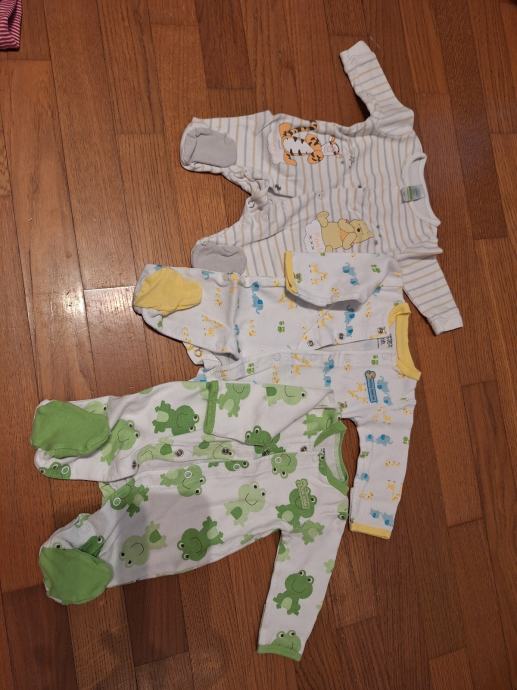Prodajem LOT odjeće za bebu dječaka. Veličine 46, 50, 56, 62. Ima svega bodi dugi rukav, pidžamice za spavanje, kapice, čarapice, hlačice sa stopalima i bez, štramplice, vestice. Neke stvari samo oprane, neke malo nošene, neke malo više. Na prvoj slici se vidi sve zajedno, a na ostalima pojedinačno. Osobno preuzimanje po dogovoru ili slanje putem box now, troskovi dostave nisu ukljuceni u cijenu.