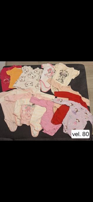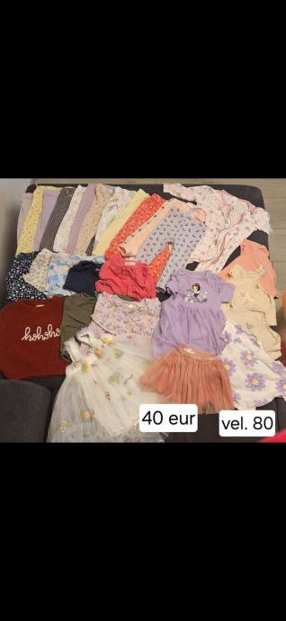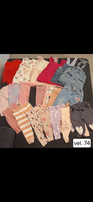 Pozdrav! Prodajem lot odjeće za djevojčice od vel. 68 do 80 (rođena u 10.mj.). Odjeća je nošena i očuvana, ima i stvari koje su s etiketom ili samo oprane. Šaljem kako Vam god odgovara (plaćate poštarinu), u obzir dolazi i preuzimanje u Varaždinu.