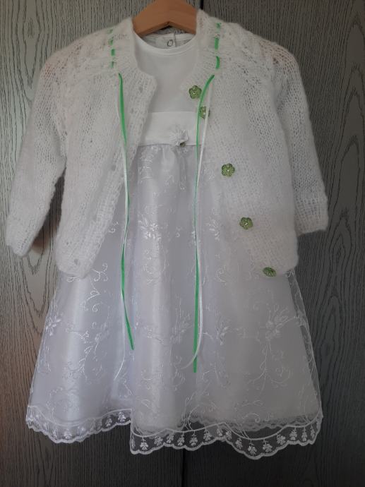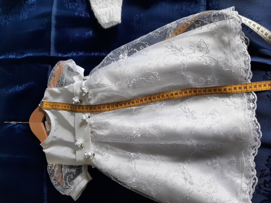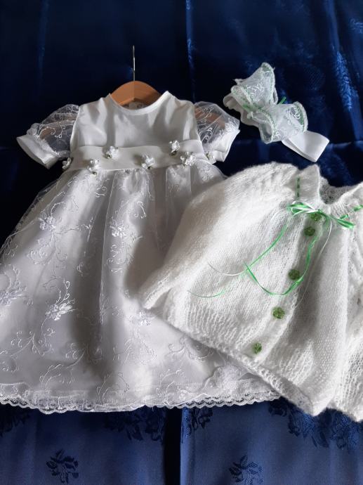 Prodajem komplet odjeće za krštenje. Haljinica, vestica i trakica. Ručni rad. Veličina 74. Točne mjere su na slikama.