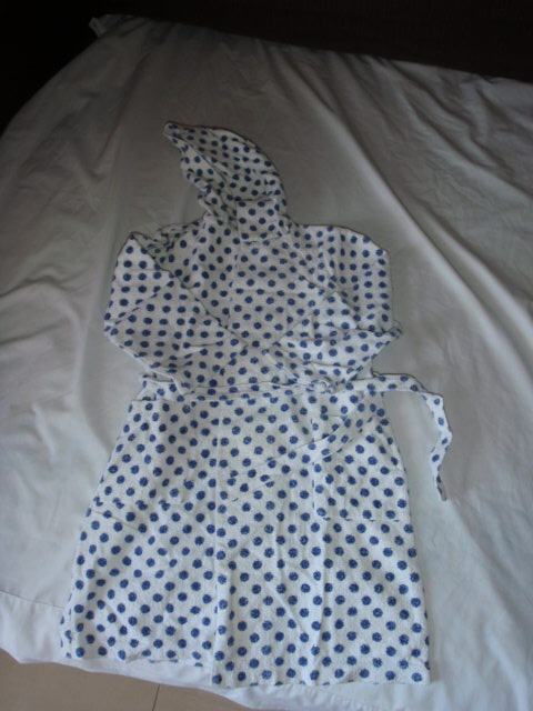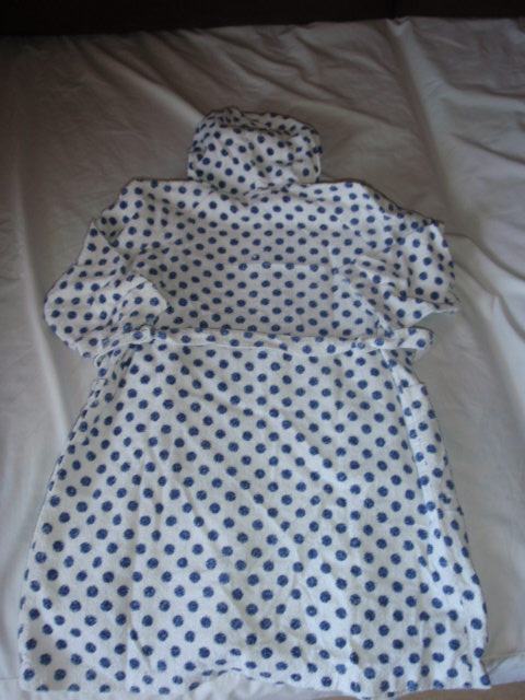 Dječji pamučni ogrtač sa kapuljačom. Velična za 2-2,5 godine. Dužina cca 60 cm. Bijeli sa plavim točkama. Dobro očuvan bez flekica i oštećenja. Pogledajte moje ostale oglase.