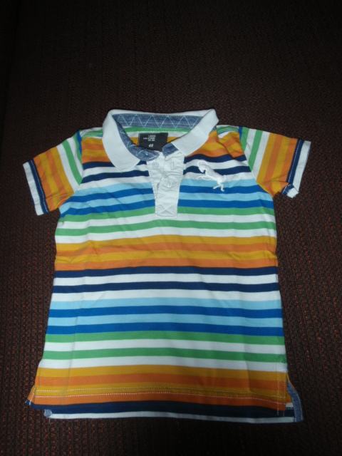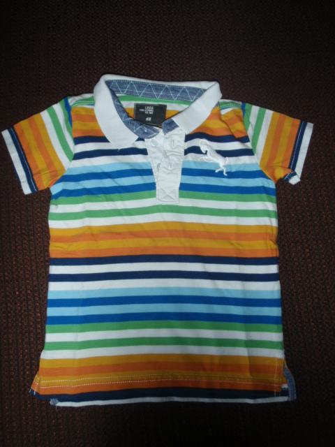 Dječja prugasta polo majica. Veličina 86. Brand H&M. Kombinacija bijele, narančaste, crvene, zelene, modre i plave boje. Jako dobro očuvana, bez flekica i oštećenja. Pogledajte moje ostale oglase.