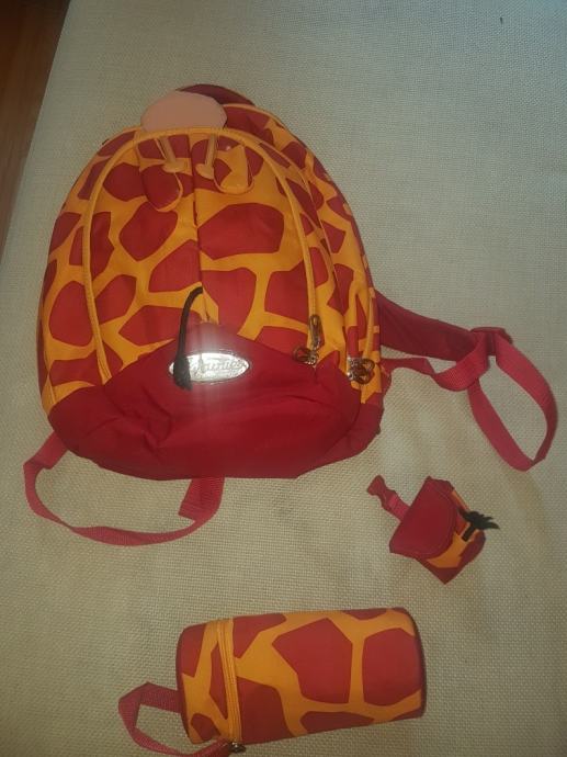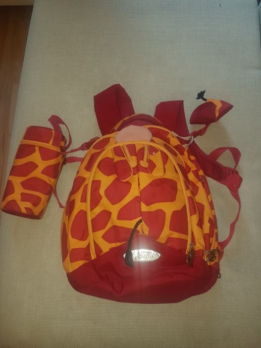Samsonite Sammies žirafa ruksak za bebe. Ogroman. Može se staviti na kolica. Dolazi sa futrolom za dudu i futrolom za bočicu koje se mogu pričvrstiti za ruksak.