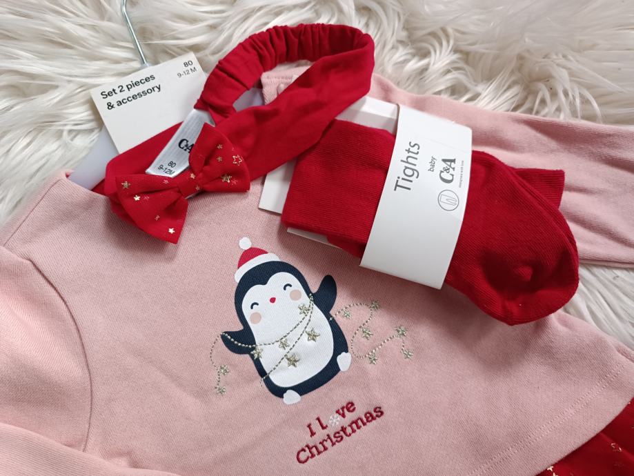 1. C&A set 3u1 broj 80 (Božićna haljina, štramplice i traka s mašnom) - 18€ - PRODANO