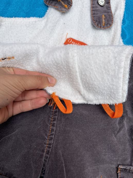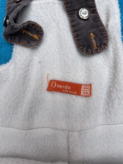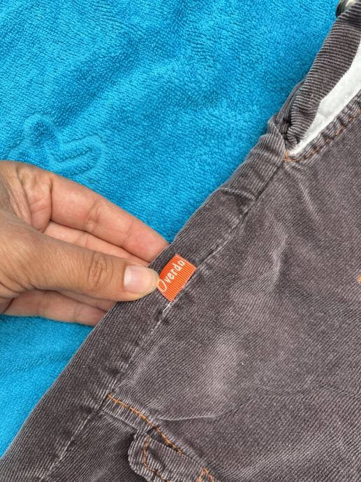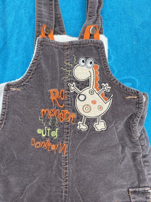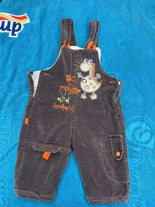 Smeđe samtene tregerice s dinosaurom 68, Overdo. Tople (podstavljene), trebalo bi pričvrstiti jednu trakicu za gumb iako se drži.