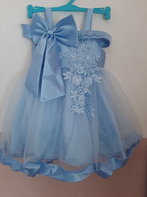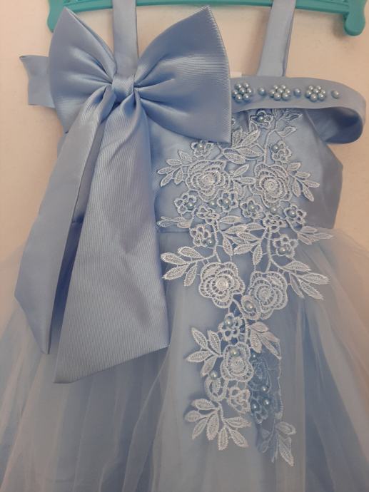 Prekrasna nova dječja haljina. Obućena na sat vremena. Vrlo profinjena u kombinaciji sa satenom i tilom. Vel. 80