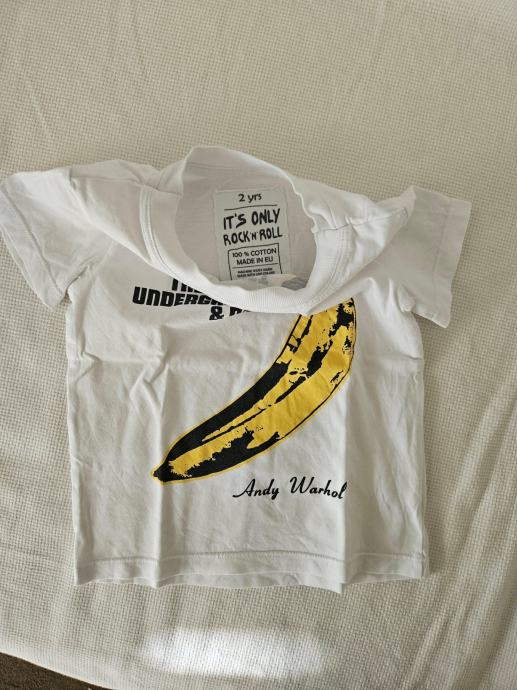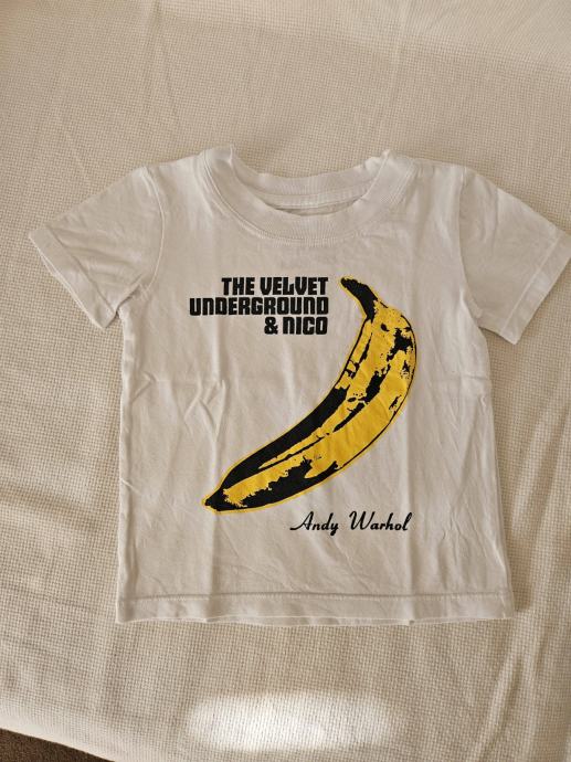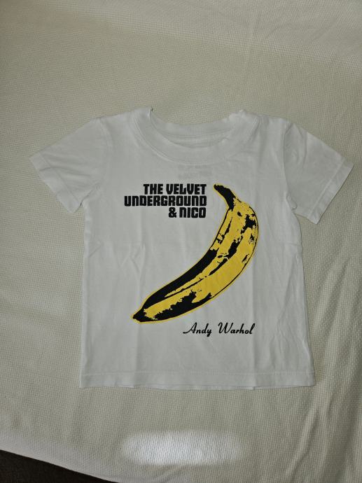 Pamučna majica kratkih rukava sa natpisom benda The Velvet underground & Nico te slikom banane Andy Warhol. Majica je kratko nošena, očuvana, bez oštećenja. Iako je navedeno na deklaraciji da je za 2 godine, realno je manja, odgovara veličini 86.
