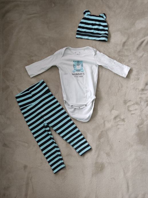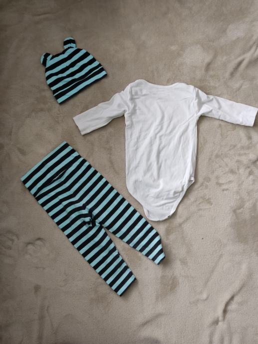 Trodijelni komplet za bebe. Bodi, hlače i kapica. Mana, broj 62. Nošeno, očuvano. U Zagrebu i Karlovcu moguća je primopredaja. Pogledajte i ostale moje oglase, na više kupljenih stvari popust.