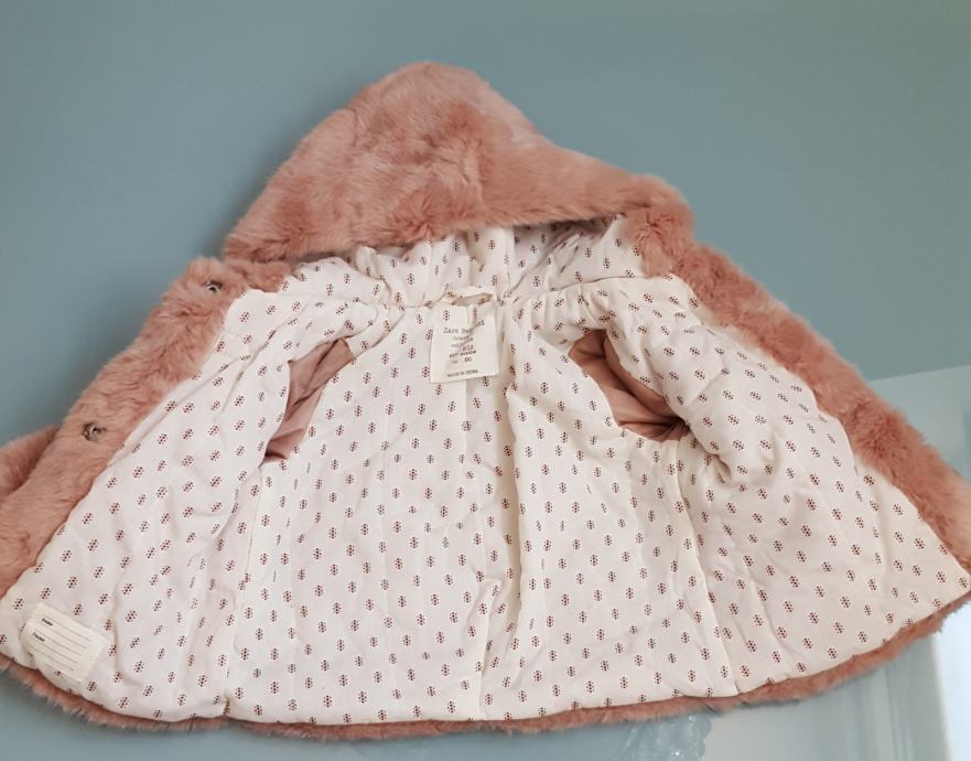 Zara zimska jakna, veličina 80 cm (9-12 mjeseci). Imitacija krzna, iznutra pamuk. Malo nošena, u odličnom stanju. Mekana i topla. Boja dusty pink.