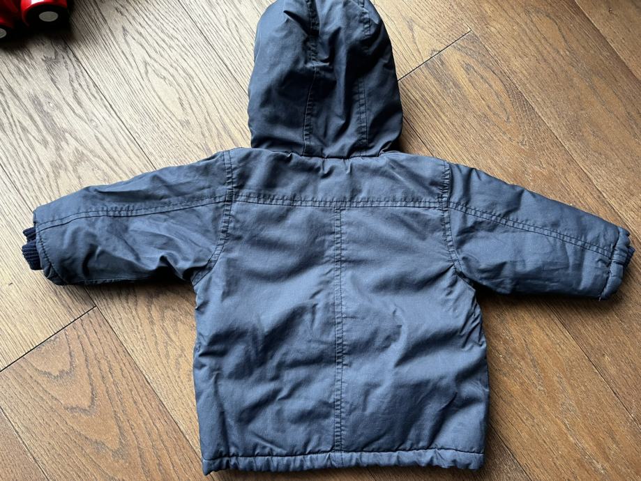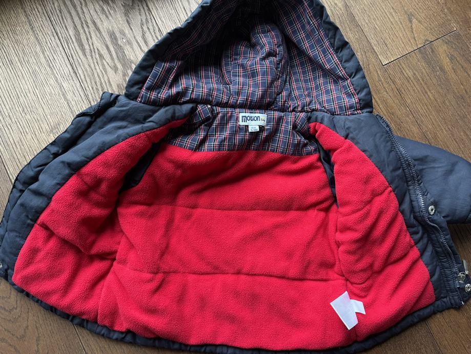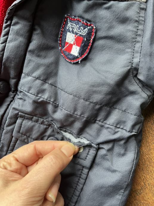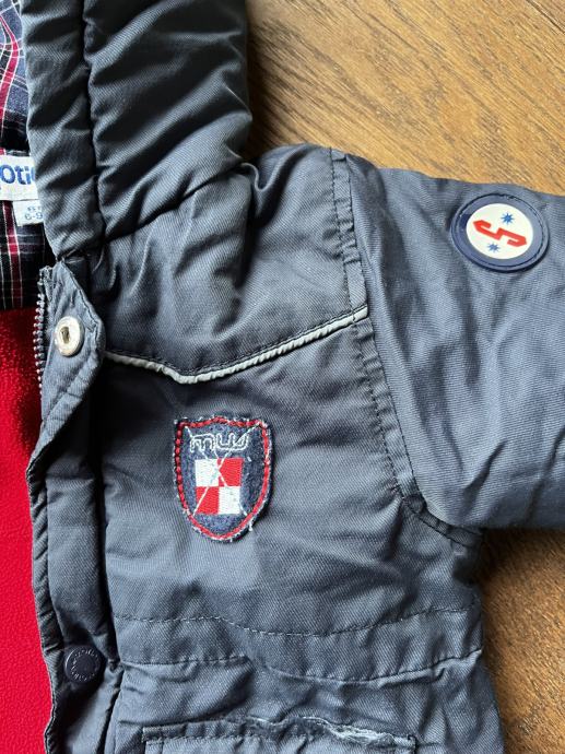 Zimska jakna 68, topla, Motionwear baby. Jedina mana je na džepu, odšio se samo rub, ne i džep. Znači nije rupa koja ide u džep nego samo rub do džepa.