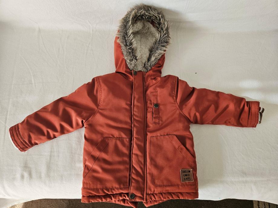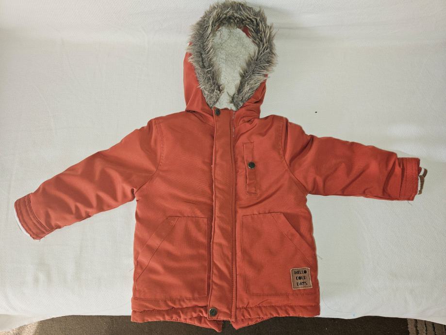 U potpunosti nova, samo oprana, topla zimska jakna za djecu veličine deklarirane 92, no doima se malo manjom, više 86. Jakna nije nošena, samo oprana, zato nema deklaraciju, ali je kao nova. Topla, podstavljena, sa kapuljačom. Boja je ciglasto crvena.