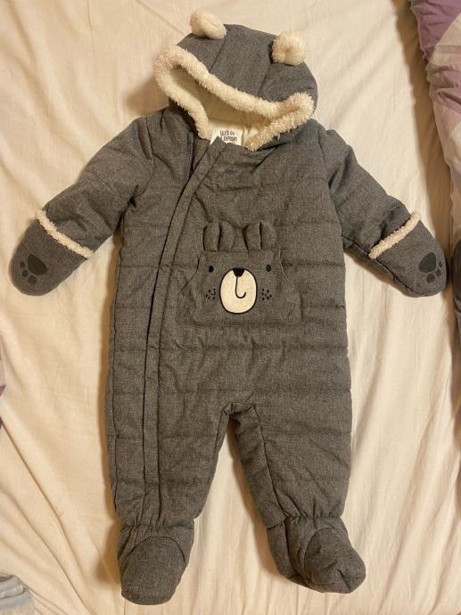Prodajem C&A zimski kombinezon za bebe sive boje. Veličina je 80. Kombinezon je izuzetno topao, mucasti (flis) iznutra. GNepromočiv je izvana, u jednom je komadu (nisu potrebne čizmice niti rukavice). Kombinezon je potpuno očuvan, kao nov, jednom je korišten na snijegu. Cijena je 15€+pt.