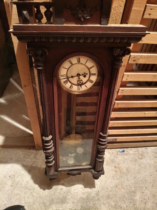 Prodajem prekrasan antikni zidni sat u masivnom drvenom kućištu, bogato rezbaren, s rimskim brojevima i klasičnim mehaničkim mehanizmom s utegom. Sat izgleda ozbiljno, radi ozbiljno i ne kasni… osim ako mu ne zamjeriš što ima više godina od prosječnog Wi-Fi rutera.