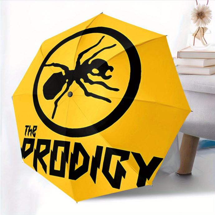 Automatski sklopivi kišobran s logotipom Prodigyja i dizajnom Ant Circle - jarko žuta i crna, automatsko otvaranje/zatvaranje s 8 rebara, prijenosni sklopivi kompaktni kišobran za sva godišnja doba, ležeran dodatak za van, božićni/rođendanski poklon za obožavatelje