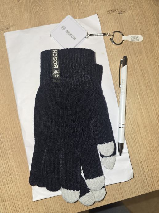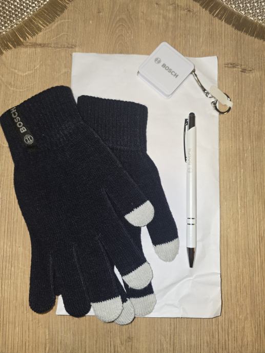 Prodajem novi i nekorišteni Bosch promotivni set, savršen za poklon ili osobnu upotrebu. Set uključuje par elegantnih touchscreen rukavica (za korištenje pametnih telefona), praktičan mini metar na privjesku i stiliziranu bijelu kemijsku olovku, sve s prepoznatljivim Bosch logom.