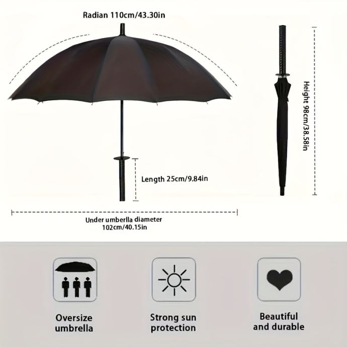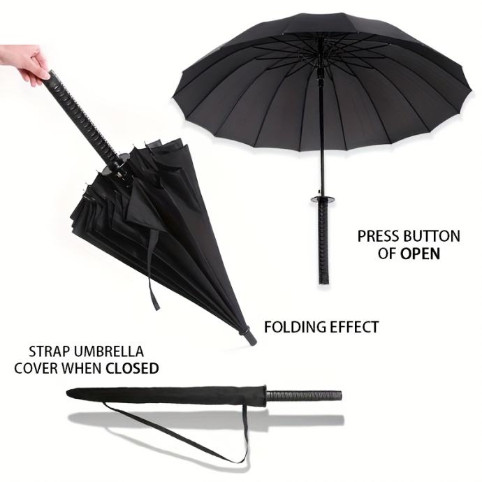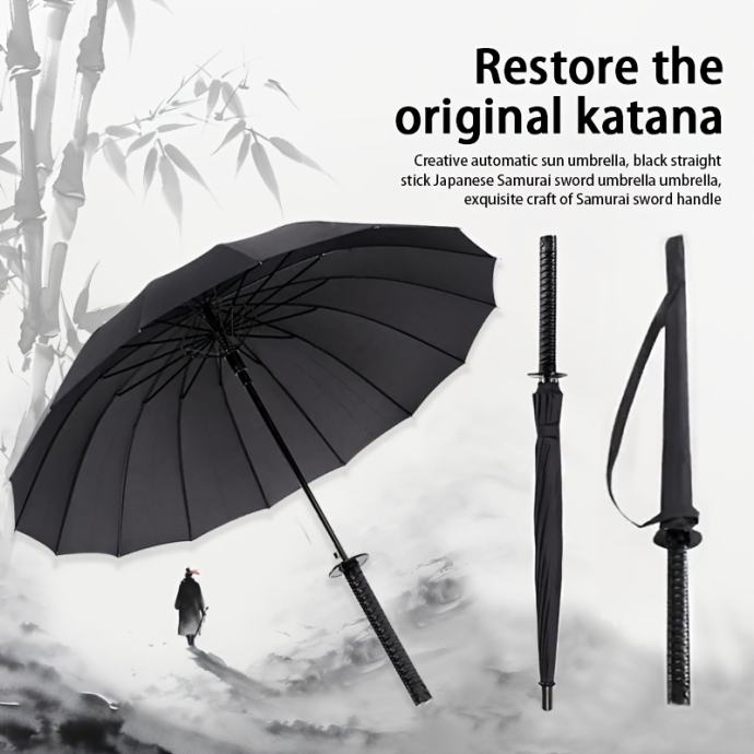 Crni ravni samurajski kišobran u obliku samurajskog mača,16 kostiju