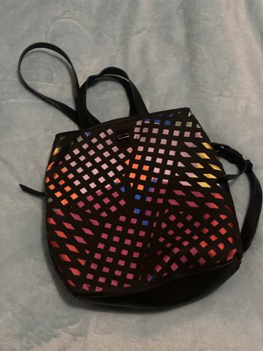 Prodaje se Desigual ruksak crne boje sa uzorkom. Korišteni ali kao novi. Ima samo vidljivo oštećenje na kopči prednji. Vidljivo stanje na slikama