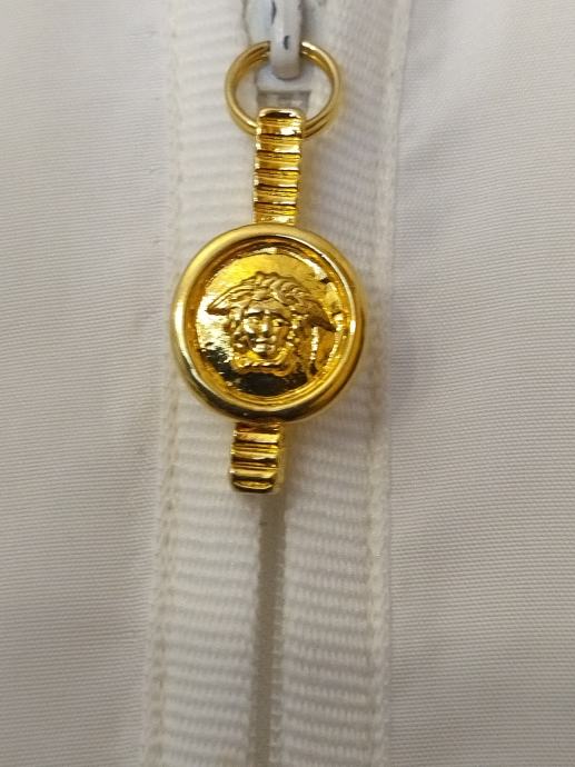 Prepoznatljivi amblem meduze na zatvaraču i otisnut na tkanini. Ispod otisnuto COUTURE, oznaka za luksuznu modu izrađenu po mjeri.