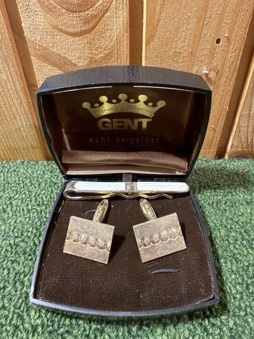 To je vintage set za odijelo (manžete + kopča za kravatu), najvjerojatnije proizveden u Njemačkoj ili zapadnoj Europi oko 1960-ih – 1980-ih