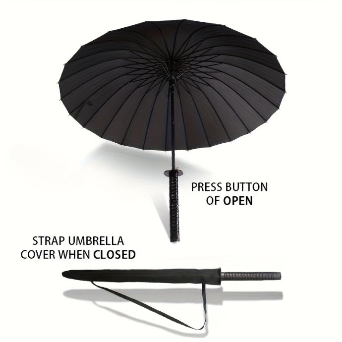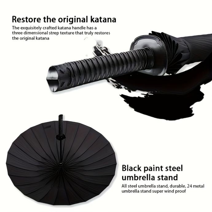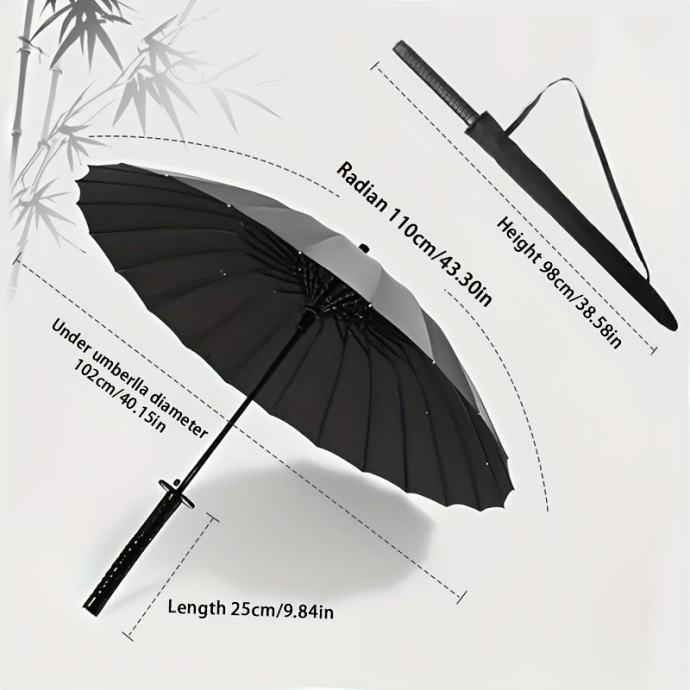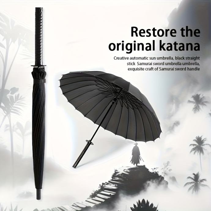 Moderan i kreativan kišobran s dugom drškom u samurajskom stilu s 24 kosti - može zaštititi od sunca i kiše, pogodan za više osoba, praktičan i kreativan. Kul i elegantan, za svakodnevne izlaske i putovanja.