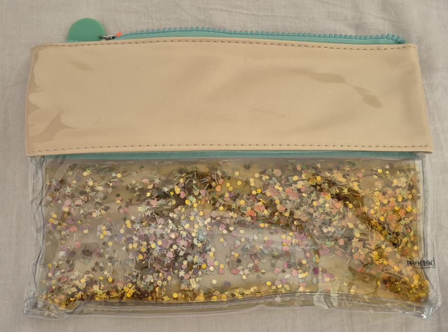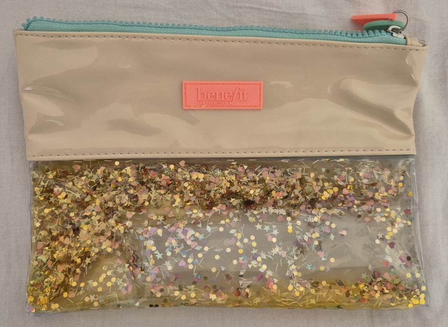 Neseser za šminku BENEFIT San Francisco sa šljokicama u vodi i zip zatvaračem. Moderan i zabavan, idealan za čuvanje šminke, kozmetike ili manjih potrepština.