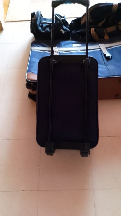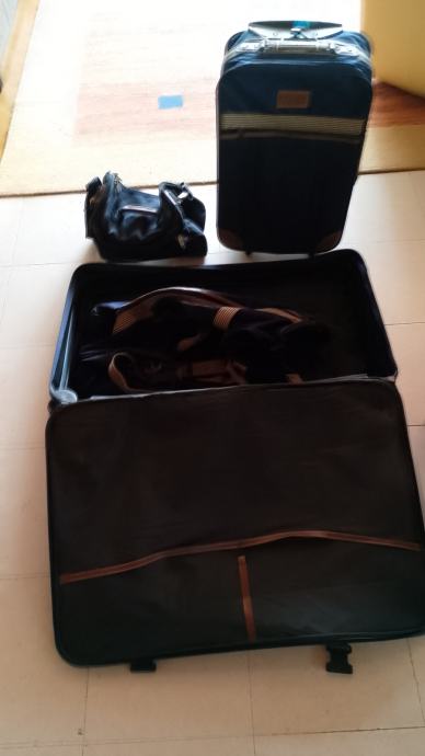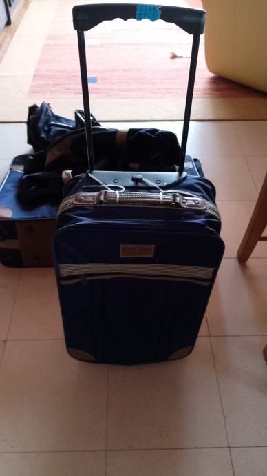 Komplet putni koferi, torbe. U kompletu veliki kofer sa vanjskim i unutrašnjim pretincima 76*50*16 na kotačima, mali kabinski kofer sa vanjskim pretincima 52*34*17 na kotačima, torba velika 60*30*30 i mala torba 28*20*18. Korišteno jednom.