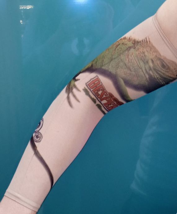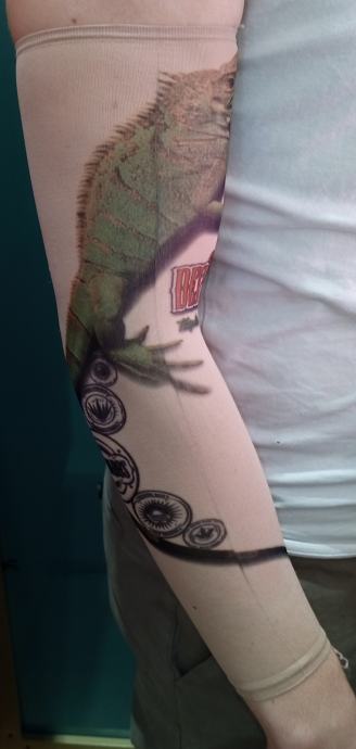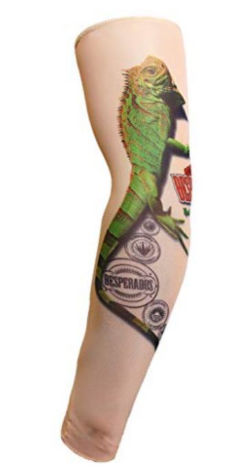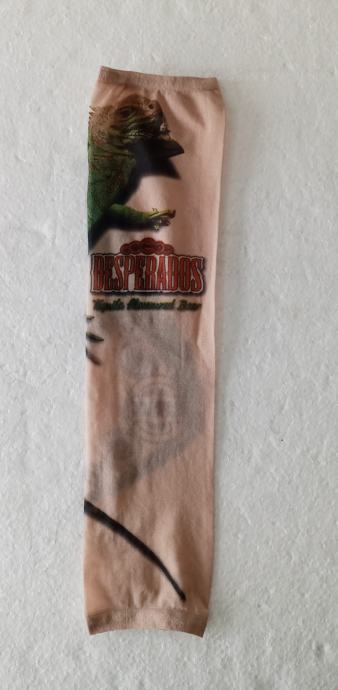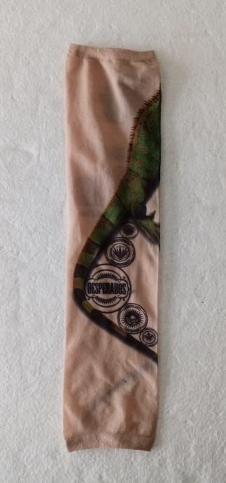 Unisex tattoo rukav sa iguanom i natpisom DESPERADOS. Služi kao zaštita od sunca i za rashlađivanje (za sportove), a i kao modni dodatak (za rekreaciju i zabavu). Dimenzije su 39×8 cm (može se rastegnuti). Veličina je univerzalna.