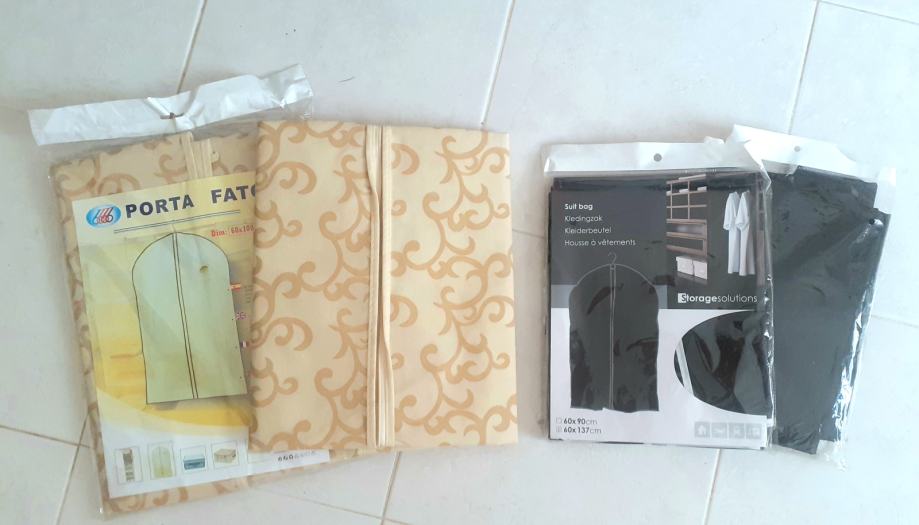 2 kom. sa bež uzorkom 60 x 100 i 2 kom crnih. Jedan 60 x 137 a drugi 60 x 130 cm. Nije plastika nego su svi platneni i imaju prozirni prozorčić da se vidi što je u navlaci.