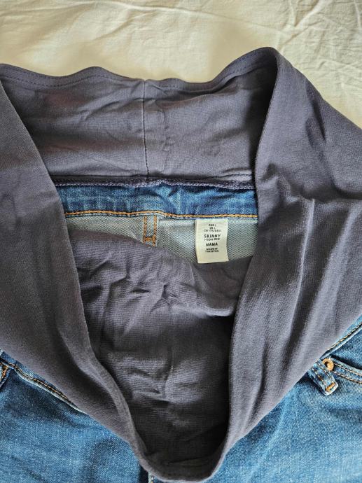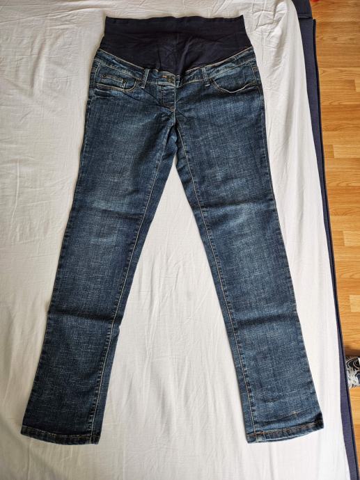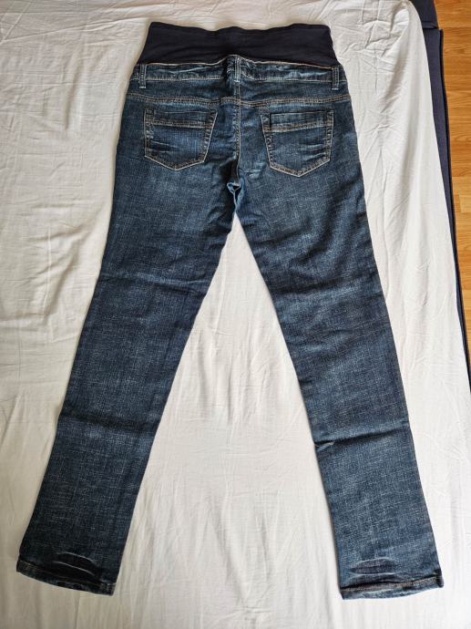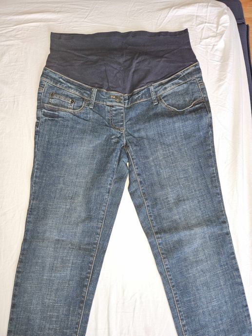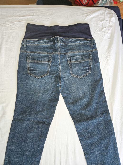 Benetton tamnoplave jeans pamučne hlače za trudnice, veličina deklarirana M, no veće su, veličina L, širina u bokovima 48 cm + nekoliko cm jer se rastežu, srednje debljine. Malo nošene, očuvane. Prodajem još hača za trudnice, pogedajte ostale oglase (zadnja sika).