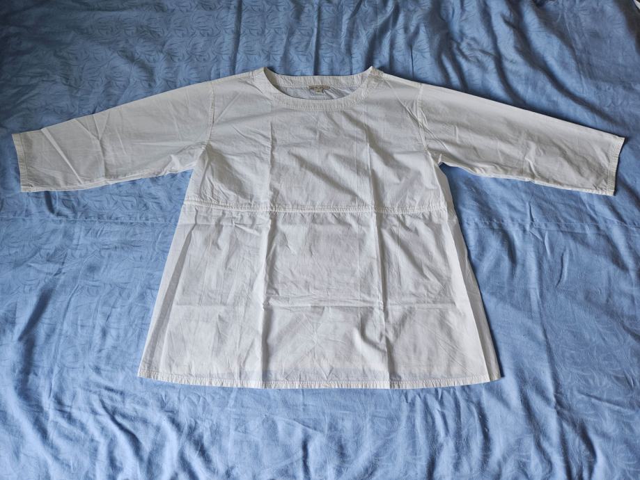 Prekrasna košulja bijele boje marke Gap maternity za trudnice. Pamučna, udobna. Ima vezicu ispod grudi koja se veže na leđima tako da se prilagođava širini prsa, a u bokovima je dovoljno široka. Rukavi su 3/4 dužine. Veličina L (40). Nošena svega par puta, odlično očuvana bez oštećenja.