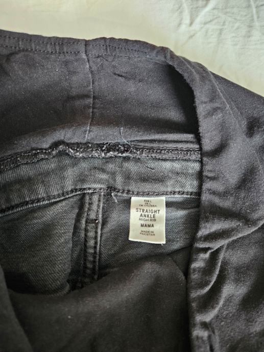 H&M crne jeans pamučne hlače za trudnice, veličina L, širina u bokovima 48 cm + nekoliko cm jer se rastežu, srednje debljine. Malo nošene, očuvane, crna boja nije isprana. Prodajem još trudničkih hlača, pogledajte ostale oglase (zadnja slika)