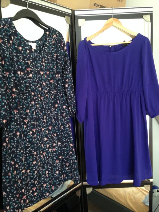 Dvije haljine (h&m size L), 4 suknje c&a, 2 majice h&m (size L i S) i pamučne crne hlače/tajice na crtu h&m. Kao LOT 150kn sve.
