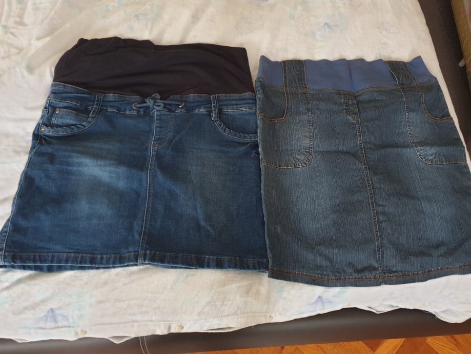 Prodajem malo nošene suknje i traperice za trudnice. Veličina suknji i traperica je L, a jedne traperice su Mama Nova veličine 32.