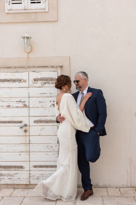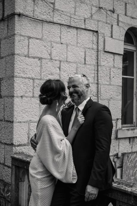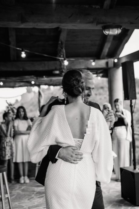 Ženstvena vjenčanica kreatorskog dvojca Arileo, šivana po mjeri za mladu visine 183cm. Vrlo efektna.