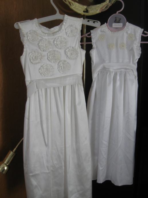 1. Haljinica za djevojčicu od oko 4 god, obučena jednom za vrijeme obreda, kao nova, ručni rad prednjica, vrlo efektno, cijena 20 eura,
