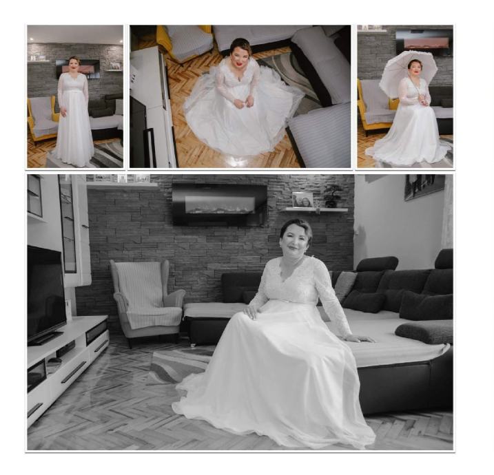Vjenčanica je sa blagim dekolteom i otvorom na leđima te ju je moguće nositi i bez vea ili šala.