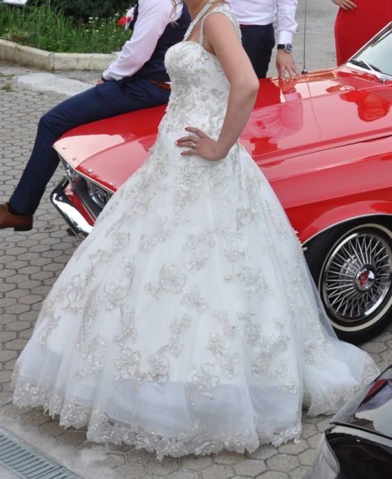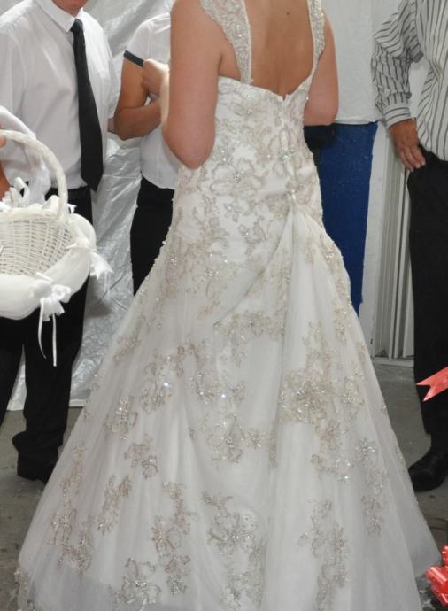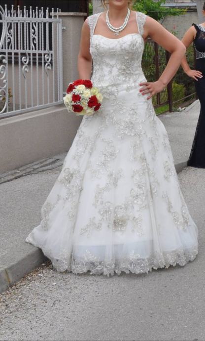 Vjencanica iz Vesne Spose, dizajnerica Maggie Sottero, moje nosenje je prvo nosenje, prekrasna je i uzivo je duplo ljepsa jer se na slikama ne vide detalji, ima srebrne niti u sebi, 3D cipku, bisere i cirkone i cijela sjaji.. jako je bogata..moze se nositi sa kolutom ili bez.. A kroj...0989582021