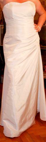 Prodajem vjenčanicu,Balina Joppich, kupljena u Beču,vel.46, boja ivory i šal u istoj boji u original pakiranju.Diskretan ukras od prozirnih kristala na gornjem dijelu haljine,materijal šantung svila.Ugodna za nosenje,lijepo oblikuje liniju tijela, jedanput nosena.Cijena 400 EUR.