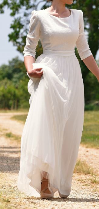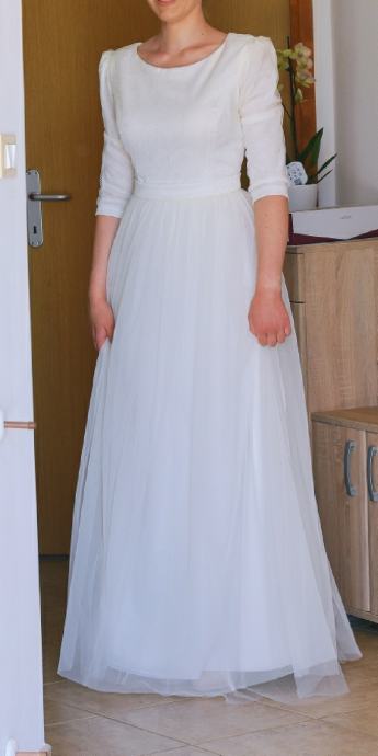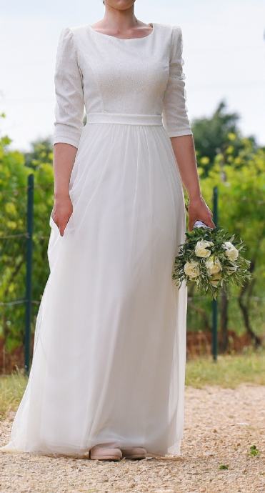 Vjenčanica je ručno šivana, veličina xs/s, u izvrsnom stanju. Isprobati se može u Zagrebu ili Koprivnici.