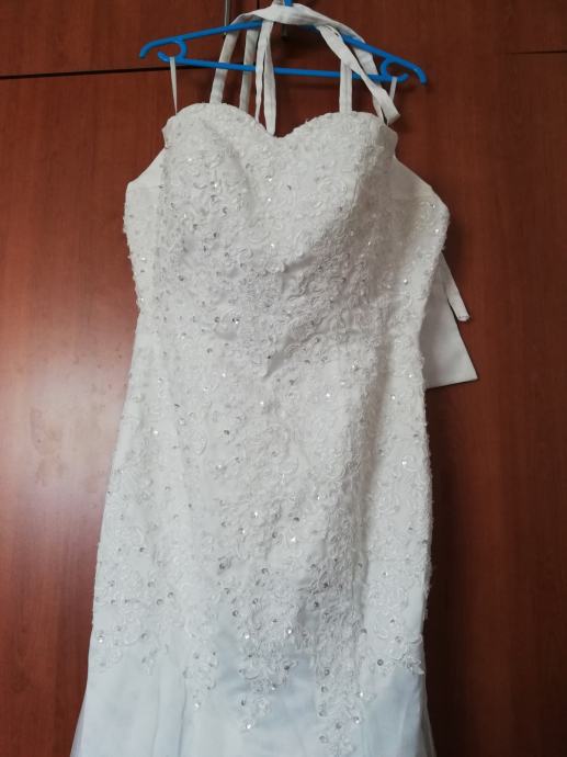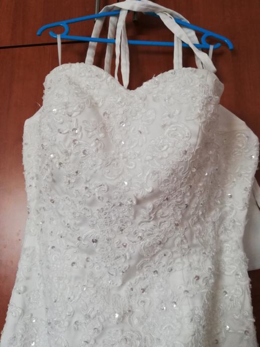 Prodajem vjenčanicu veličina 38-40. Na leđima se da podesiti (smanjiti ili povećati). Za djevojke visine do 170 cm. Gratis cipele i podsuknja za vjenčanicu. Cijena 80 eur.
