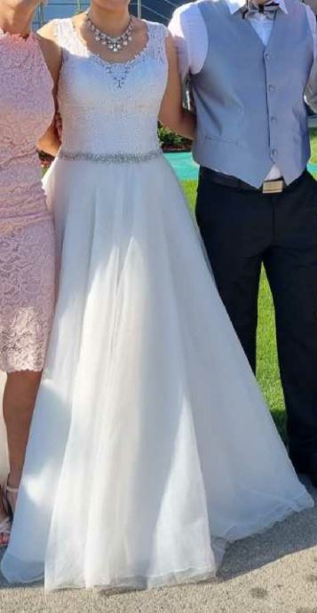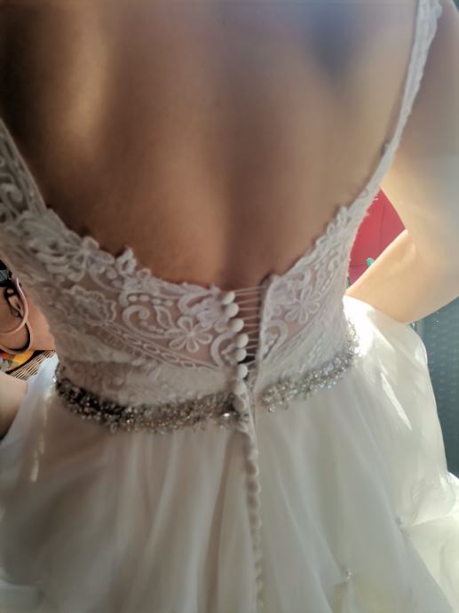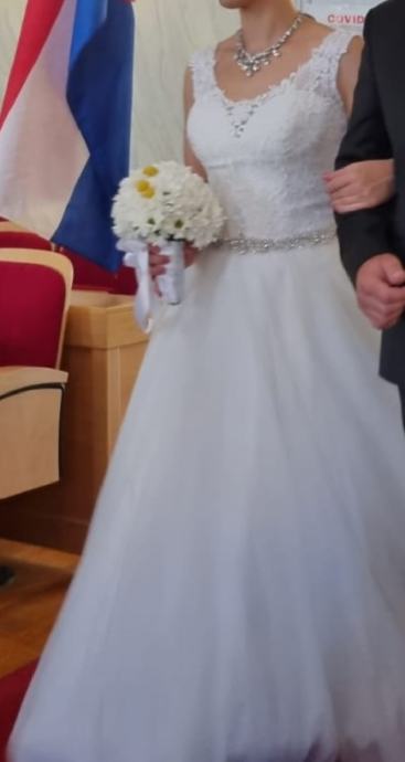Vjenčanica 38/40...može se sužavati i proširivati jer nije obična haljina ! Kemijski očišćena,nije rezana i skraćivana,odgovarala mi je original kakva je bila u salonu gdje sam ju kupila ! Zvati na broj 095 591 71 16