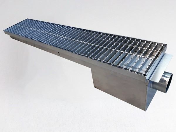 Inoks podna rešetka s koritom i sifonom,150mm x 2500mm x Ø50mm / Ø75mm