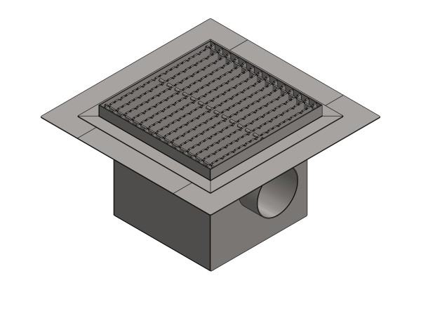 Inoks podni sifon s rešetkom dimenzija 300mm x 300mm x 257mm Ø110mm